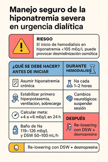 La hemodiálisis no debe iniciarse sin un plan específico para controlar el ritmo de corrección del sodio en hiponatremias severas.